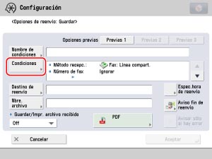 [Activar esta condición de reenvío] es equivalente al botón [Validar/Invalidar] en la pantalla de opciones de reenvío de su equipo imageRUNNER ADVANCE.
