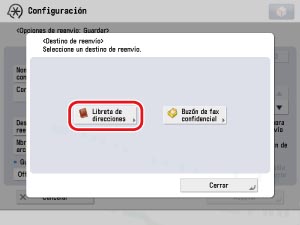 → [Opciones de funciones] → [Recepción/Reenvío] → [Opciones comunes] → [Opciones de reenvío] → [Guardar].