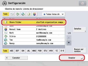 Seleccione la carpeta compartida del empleado B para el destino de reenvío → pulse [Aceptar].