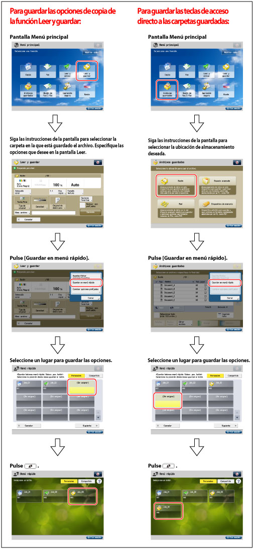 Para instrucciones acerca de cómo guardar un botón personal o un botón compartido, consulte la explicación con la función Leer y enviar como ejemplo en "Guardar los botones personales y los botones compartidos".
