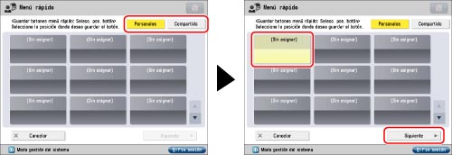 Seleccione [Personales] o [Compartido] → seleccione el botón que quiere guardar → pulse [Siguiente].