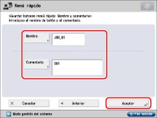 Pulse [Nombre] → introduzca un nombre → pulse [Aceptar].