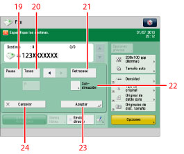 Pantalla de funciones básicas de fax