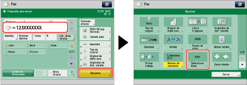 Si selecciona [Auto], en el papel del receptor se imprimen el número de teléfono y el nombre guardados para la línea utilizada para el envío. También pueden aparecer en la pantalla táctil del equipo receptor.
