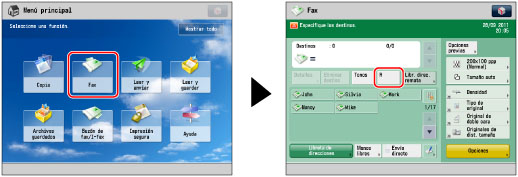Esta sección describe únicamente el procedimiento de introducción de números de fax.