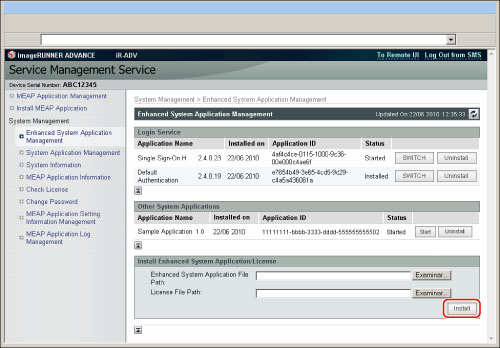 Al instalar una aplicación de sistema, debe especificar tanto el archivo de la aplicación como el archivo de licencia.