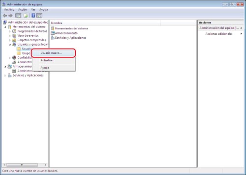 Si usa Windows Server 2008 R2, [Usuarios y grupos locales] se encuentra en [Configuración] en [Administrador del servidor].
