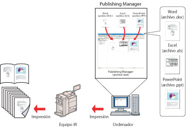 Con Publishing Manager, se pueden crear documentos eficazmente sacando el máximo partido de las funciones de un equipo Canon.