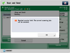 El equipo detiene la lectura si se alcanza el valor de límite de lectura mientras se están leyendo originales introducidos con el alimentador. (Los originales que se leyeron antes de alcanzar el límite no se añaden al contador de lecturas.)