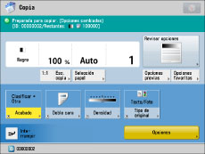 En la pantalla de funciones básicas de copia y en la pantalla Opciones de impresión aparecen los dos elementos para los que quedan menos páginas restantes. No obstante, si el más bajo es el límite de impresión total, sólo se muestra el límite de impresión total.