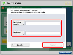 Introduzca el nombre de usuario y la contraseña utilizados para la autenticación de servidor LDAP → pulse [Aceptar].