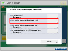 Los ajustes siguientes se requieren para utilizar información de autenticación diferente para cada usuario., Cada usuario necesitará guardar el servidor LDAP y la información de autenticación para acceder al servidor LDAP mediante los procedimientos indicados a continuación.