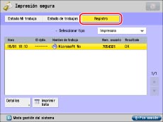 Imprime la lista de estado de los trabajos. Pulse [Imprimir lista] → [Sí] para imprimir la lista.