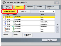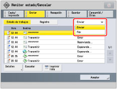 También puede cancelar un trabajo de envío pulsando