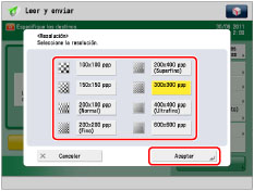 Si selecciona [OOXML] como formato de archivo, sólo podrá enviar en [300x300 ppp] o [600x600 ppp].