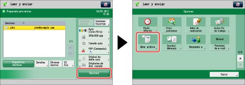 Si se selecciona Dividir en páginas: El nombre de archivo se compone del nombre del archivo tal y como se introdujo, el año, el mes, el día, la hora, los minutos, los segundos en que se envío el archivo, más cinco dígitos que representan el número de página de la imagen. Ejemplos: nombre de archivo_20120707203000_00002.tif nombre de archivo_20120707203000_00002.jpg nombre de archivo_20120707203000_00002.pdf nombre de archivo_20120707203000_00002.xps Si no se selecciona Dividir en páginas: El prefijo del nombre del archivo se genera a partir del nombre del archivo y el año, el mes, el día, la hora, los minutos y los segundos en que se envió el archivo. Ejemplos: nombre de archivo_20120707203000.tif nombre de archivo_20120707203000.pdf nombre de archivo_20120707203000.xps Si no se establece el nombre de archivo: