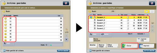 Si el destino seleccionado es un grupo de direcciones que contiene un buzón, el archivo no se enviará a (ni se guardará en) ese buzón.