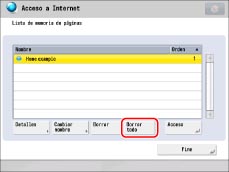 Seleccione la memoria de páginas que desee eliminar → pulse [Eliminar].