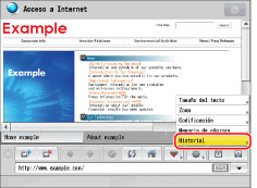 Si activa [Restringir vista de historial] en Opciones, no será posible ver el historial de URL. (Consulte "Opciones de directivas y normas de privacidad".)