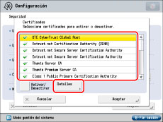 Seleccione un certificado → pulse [Activar/Desactivar].