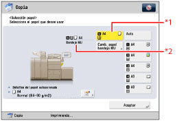 Si se ha activado [Guardar opciones prefijadas bandeja MU] en [Preferencias] (Configuración), aparecen los valores prefijados guardados. (Consulte "Guardar opciones prefijadas de bandeja multiuso".)