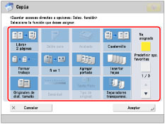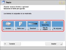 Asimismo, puede asignar accesos directos a botones de opciones favoritas previamente guardados.