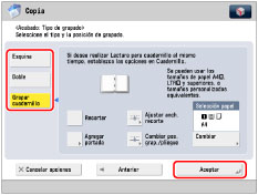 El modo [Grapar cuadernillo] sólo se puede establecer con la copia a doble cara.