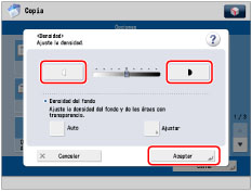 Si cambia la densidad en [Opciones], es posible que el ajuste de la densidad durante la copia no tenga ningún efecto en el resultado final.