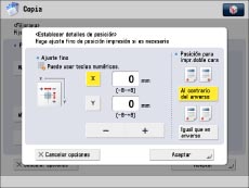 Si establece dos de los modos [Numerar páginas], [Numerar juegos cop.] o [Imprimir fecha] para imprimir en la misma posición, aparece un mensaje de confirmación al pulsar