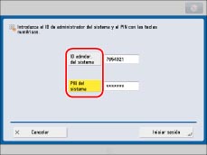 Si se establecen las opciones de administrador del sistema (ID de admdor. del sistema/PIN del sistema)