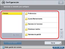 Cuando acabe de especificar las opciones, pulse [Fin sesión] en la parte inferior derecha de la pantalla para cerrar sesión.