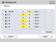 Si activa [Usar grupo], los orígenes de papel se establecerán como un grupo. Cuando se seleccione un origen de papel específico en el controlador de impresora, Cambio automático de papel se realizará en el grupo.