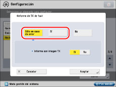 Para más información acerca del informe de TX de fax, consulte "REPORTE TX FAX/REPORTE DE TX DE FAX ERRÓNEA".
