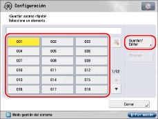 Seleccione un botón de acceso rápido que desee guardar o editar → pulse [Guardar/Editar].