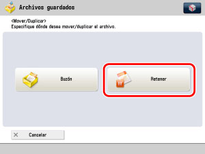 No puede mover ni duplicar archivos del Buzón de fax/I-fax, Espacio avanzado, Espacio avanzado de otro equipo imageRUNNER ADVANCE de la red, ni el dispositivo de memoria a la Cola de retención.