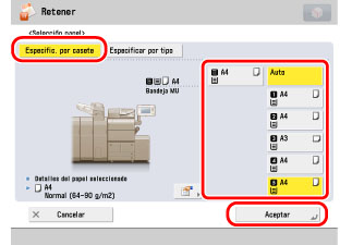 , aparece la información detallada correspondiente al papel seleccionado. |
