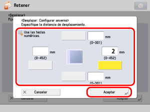 Si introduce un valor distinto de 0, puede cambiar entre anchuras de margen positivas y negativas pulsando [±].
