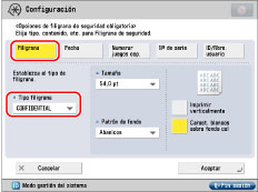 Si se establecen simultáneamente [Filigrana de seguridad controlador impresora] y [Filigrana de seguridad obligatoria] para una impresora, tendrá prioridad Filigrana de seguridad obligatoria.