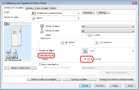 Según el tamaño de página seleccionado y el modelo de impresora que utilice, es posible que no pueda ampliar el documento.