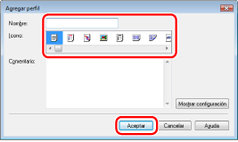 Establezca [Nombre] e [Icono] → haga clic en [Aceptar].