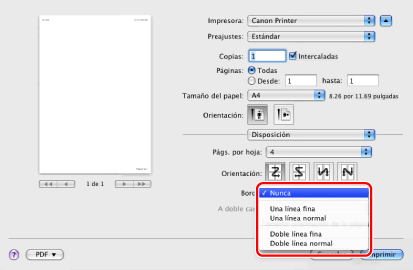 Si desea añadir un borde a cada página, seleccione el tipo de línea en [Borde].