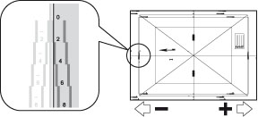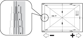 对齐标记的中心线位于打印测试页的边缘外侧(未打印对齐标记的中心线)时按此按键。图像沿纸张的输送方向按照输入像素的数值向右移动。