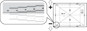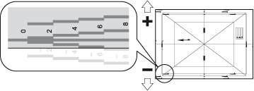 对齐标记的中心线位于测试页的边缘外侧(未打印对齐标记的中心线)时按此按键。图像沿纸张的输送方向按照输入像素的数值向后移动。