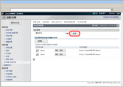 设置是否将本机的“高级存储箱”对外共享为网络上的WebDAV服务器或SMB服务器。