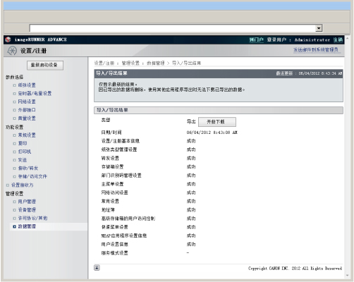 也可通过按<管理设置>的[数据管理]→[导入/导出结果]检查最新的导入/导出结果。