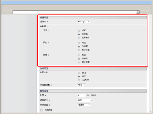 选择[分辨率],可以打印具有不同轮廓的文本,此设置最适于打印文本和细线条。