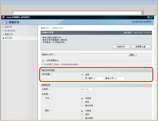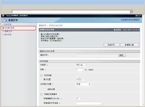 要从“远程用户界面”直接打印PS/EPS文件,必须启用“PS打印组件”。