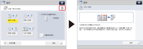 触摸面板显示屏幕上出现 时,可以检查功能及其设置的详细说明。