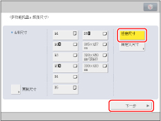 (清除)→输入正确的数值。要选择存储在尺寸按钮([S1]到[S5])中的已注册纸张尺寸,必须先将非标准纸张尺寸存储在尺寸按钮中。有关存储非标准纸张尺寸的说明,请参阅“注册/编辑/删除自定义纸张尺寸”。
