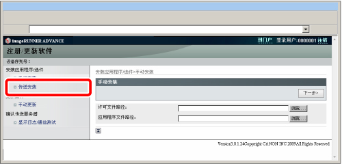 根据安装的系统可选配件/MEAP应用程序,可以从安装后显示在屏幕上的URL下载系统可选配件/MEAP应用程序的手册或相关软件。